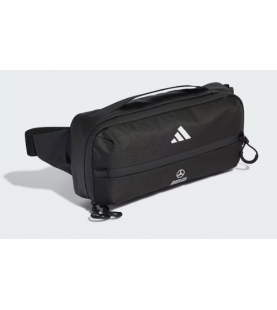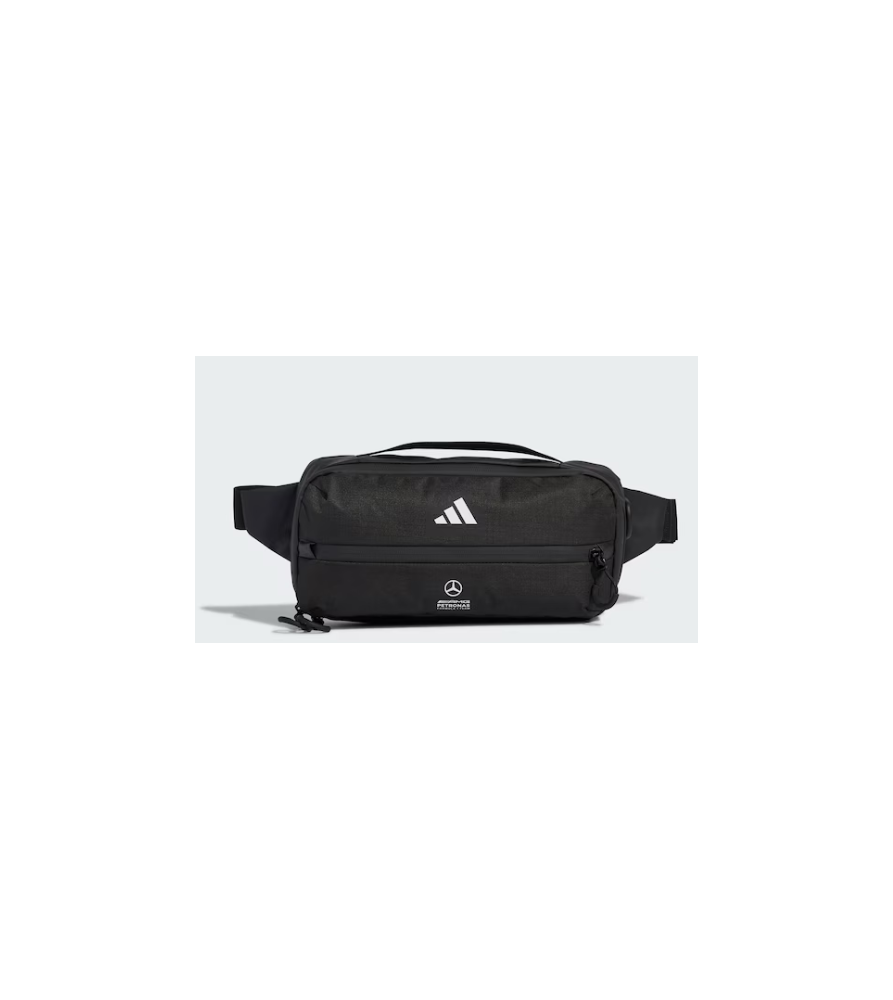 100 % polyester (recyclé). Compartiments séparés. Bande réglable en largeur. Logos Mercedes-AMG PETRONAS Formula One Team et adidas. made for Mercedes-Benz by adidas.